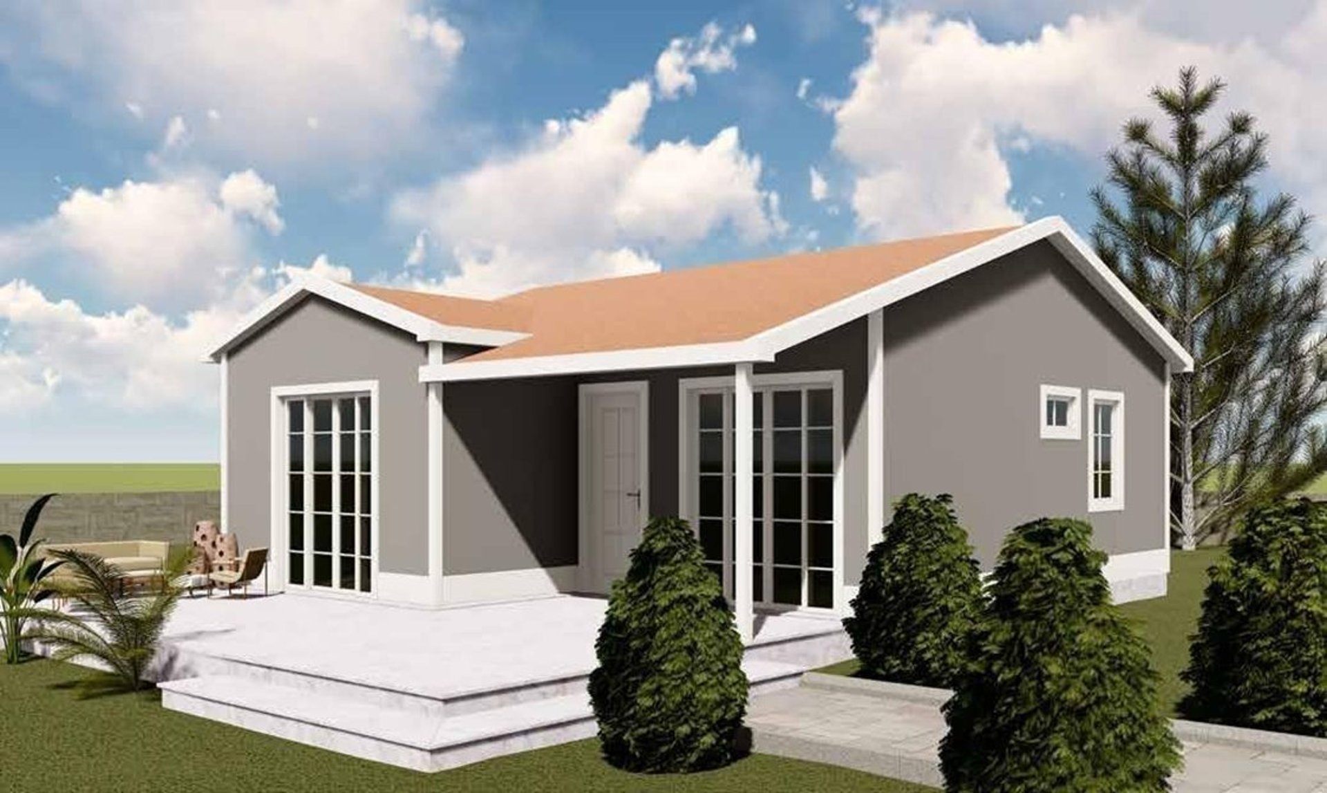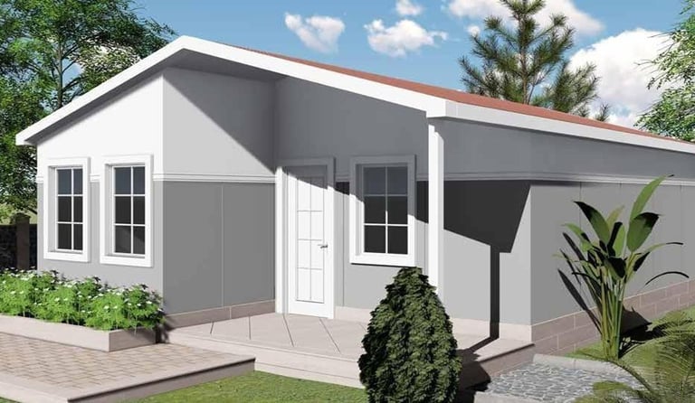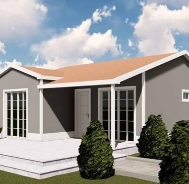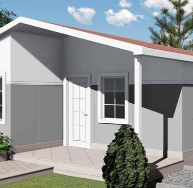 Funcional, cálida y eficiente. Esta casa de una planta ofrece una estética clásica con toques modernos, ideal para quienes valoran el confort y la practicidad. Sus aberturas amplias aportan luminosidad y conexión con el entorno, mientras que su diseño compacto permite una construcción rápida, sólida y adaptable a distintos terrenos.