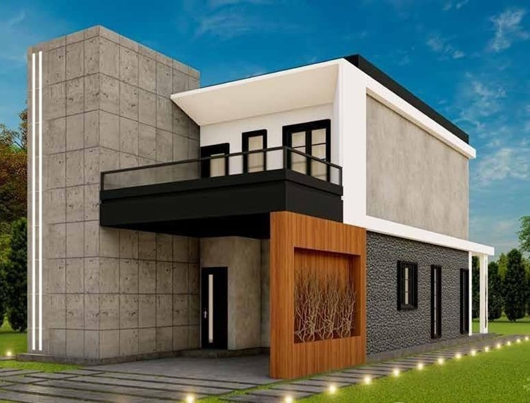 Diseño moderno y funcional en una planta, ideal para quienes buscan confort y estilo. Su fachada sobria con grandes aberturas invita a disfrutar la luz natural y el entorno. Combina estética contemporánea con eficiencia constructiva.