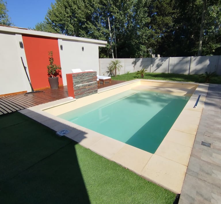 Perfecta para relajarse o disfrutar con niños. Combina diseño moderno con una entrada progresiva tipo playa, ideal para poner reposeras en el agua.